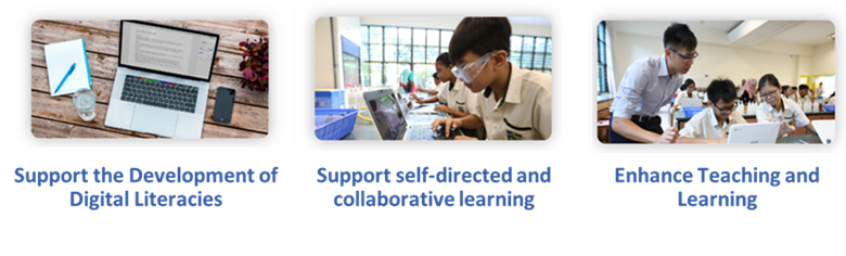 The Personal Learning Device (PLD) will be used in tandem with the national e-learning platform – the Singapore Student Learning Space (SLS) – as well as other educational technology to personalize and enhance students’ learning. This will also better enable students to acquire and apply digital skills as they navigate an increasingly digitalized world. Students will also acquire digital literacy in the four components of Ministry of Education’s Digital Literacy Framework: